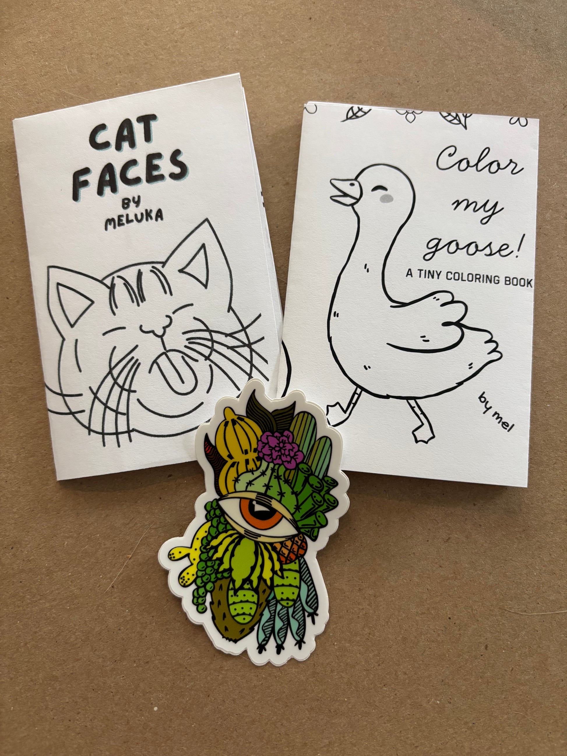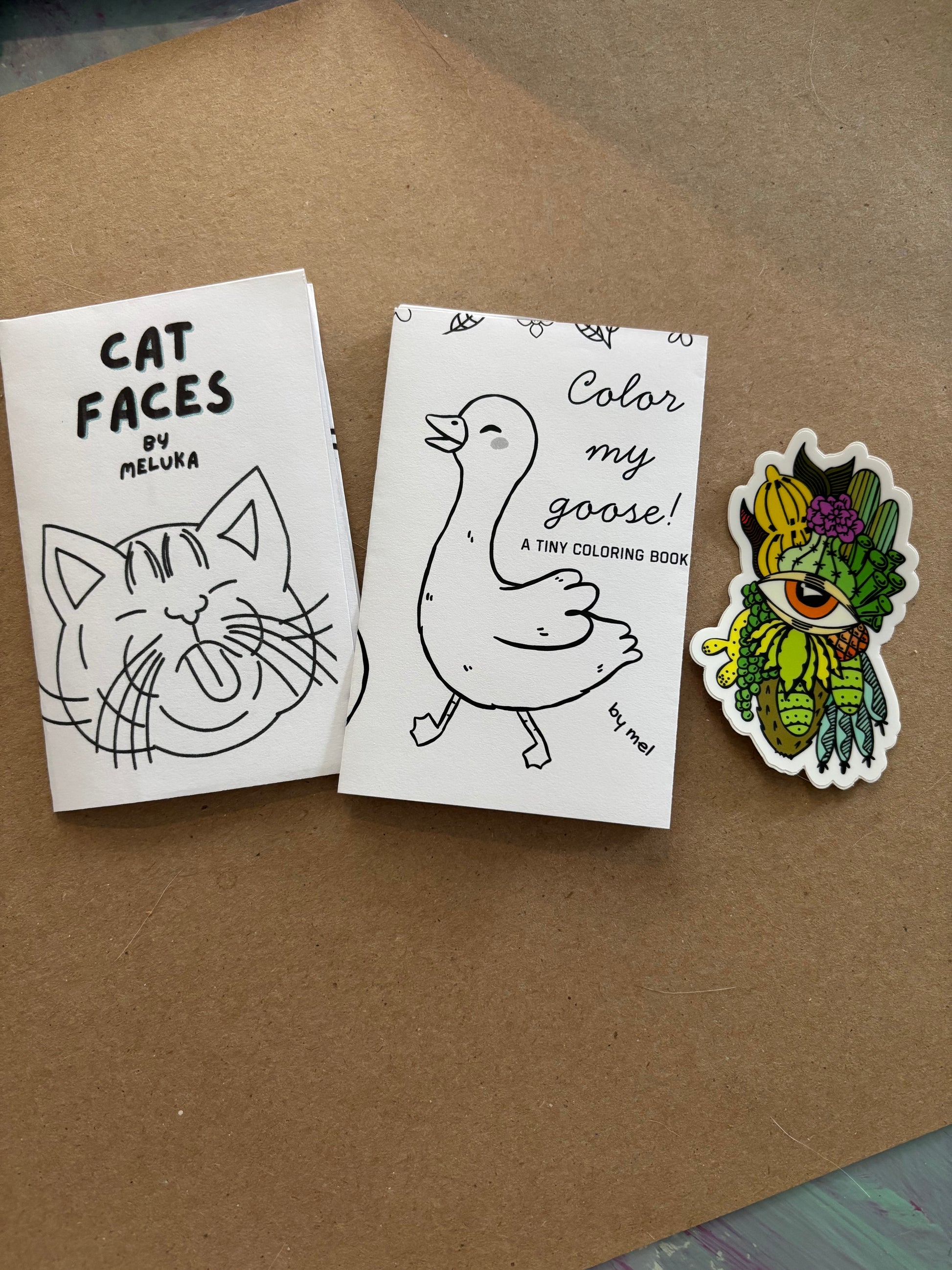 Color My Goose and Cat Faces tiny coloring book zines and sticker bundle (Copy)
