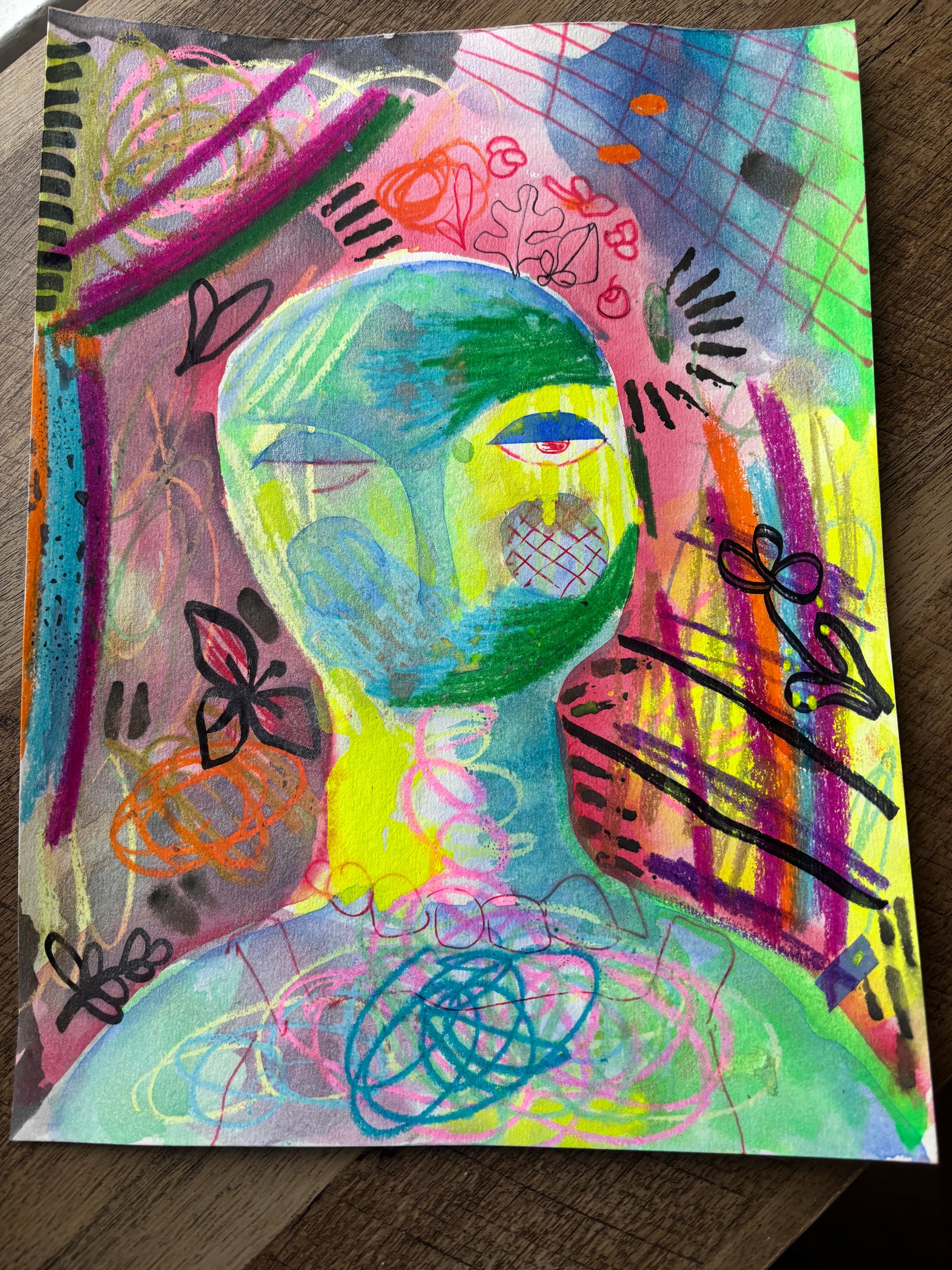 Original 9 by 11 inch mix media painting: Portrait of a queer Latina