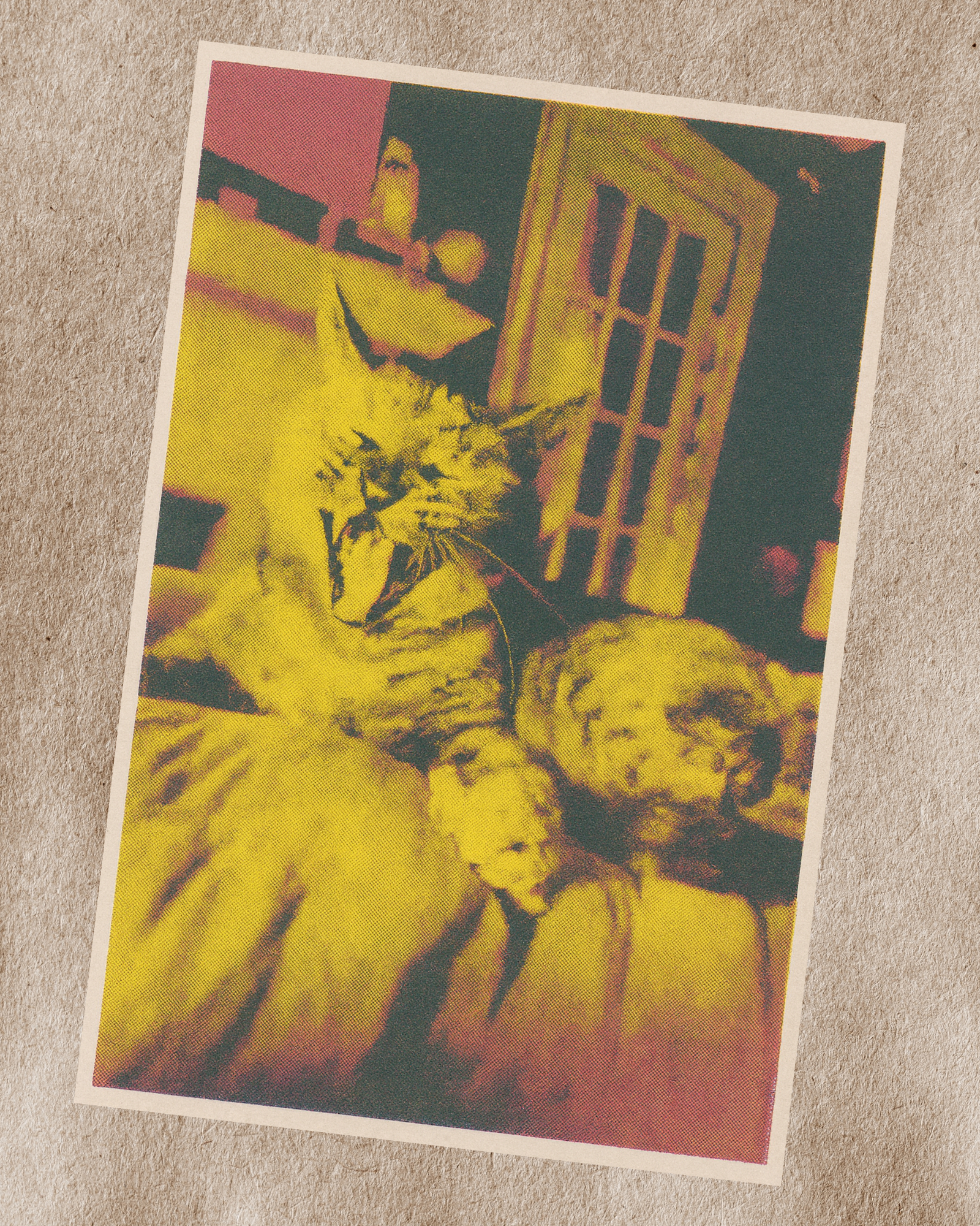 The style: Think vintage concert posters meet your cat. Bright, bold, slightly chaotic. Each portrait is digitally designed by me to mimic the layered, textured look of traditional risograph printing without the actual printing process, but only because I don't have 20K to drop on a 1980's printer (hence faux riso).